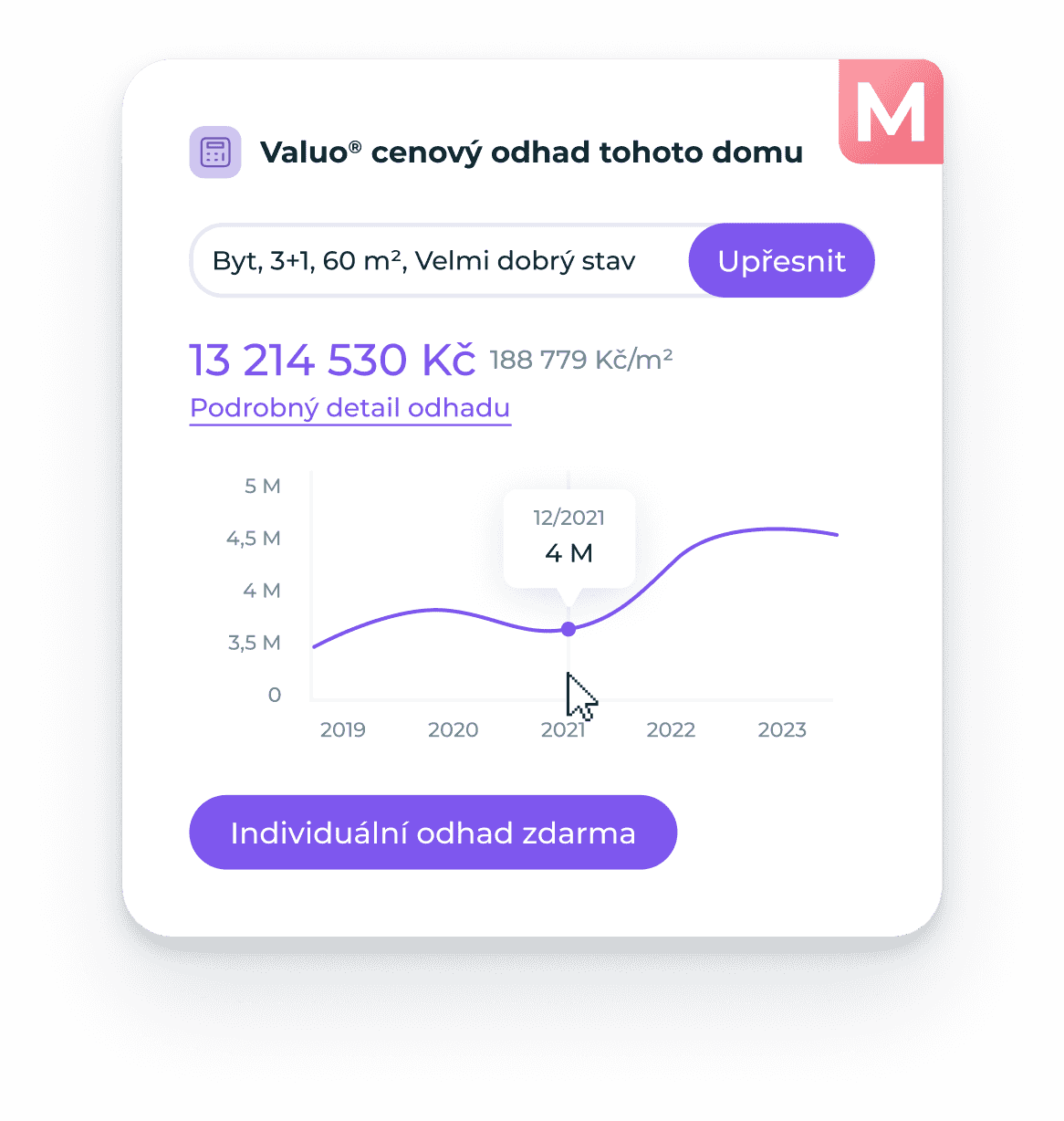 Valuo je skvělý nástroj, který naší realitní kanceláři pomáhá při stanovení přibližné ceny nemovitosti.
